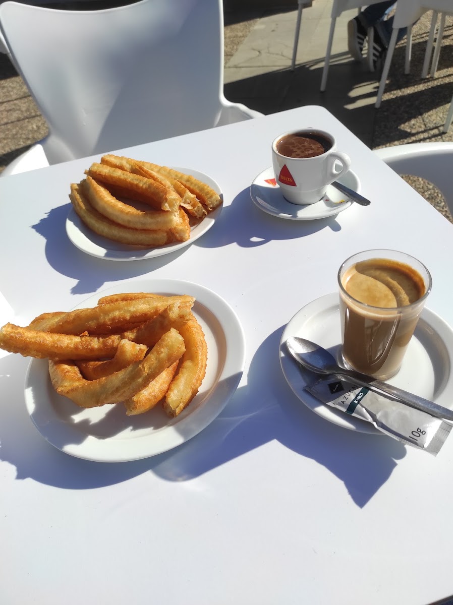 Un’ottima scelta per una pausa golosa: i churros con cioccolata calda sono davvero deliziosi, croccanti al punto giusto e perfettamente accompagnati da una cioccolata densa e profumata. I tavolini all’aperto, ben distanziati dalla strada, permettono di godersi il momento in tranquillità, anche nelle giornate più miti. Commento personale: Consigliata per una merenda tradizionale e gustosa, ideale per chi vuole prendersi una pausa dolce durante lo shopping o la visita in zona. Cafetería-churreria que se encuentra fuera del centro comercial Neptuno. Muy deliciosos churros con chocolate caliente. Mesitas situadas al aire libre no muy cerca de la calle. Recomiendo para una buena merienda.